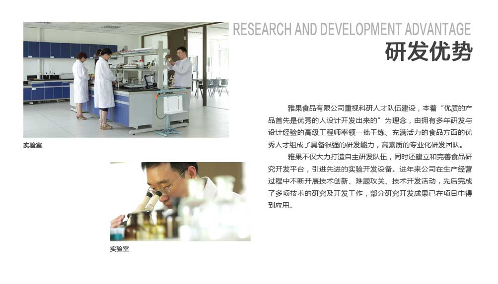 公司一直注重企业技术创新方面的改进,打造成为集基础研究、产品研发、成果转化为一体的科研团队,自2000年开始,公司借助国内酸奶产品迅速增长的优势,为蒙牛、伊利等知名乳品企业提供首支酸奶水果果粒,并以此奠定企业生产规模和行业地位至今,时刻关注国内外食品行业动态,瞄准先进技术开展自主技术创新或服务创新,从产品品类、产品加工工艺两个方面进行产品革新。先后推出了黄桃果酱、草莓果酱、蓝莓果酱、黄桃燕麦果酱、青稞果酱等乳品用水果果酱、水果谷物果酱及谷物果酱等产品,并不断跟踪消费者食用习惯推出新品和原有产品的口味革新。